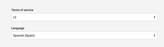 You can also select terms of service and portal language here, for more info on languages see this article.