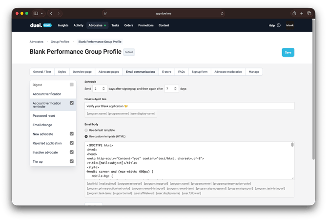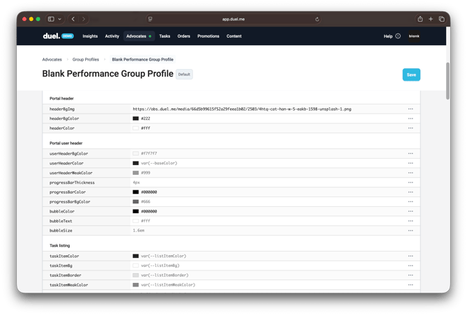 It allows you to define how a Group looks and reads, including branding elements and written content, ensuring a consistent experience for Advocates.