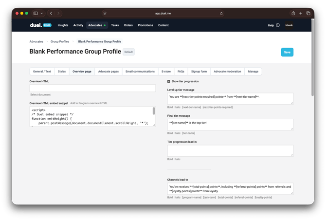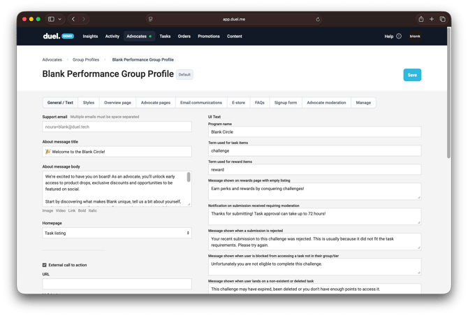 The Advocate Pages tab contains all the copy displayed across your Advocate Pages. For more detailed guidance on configuring Advocate Pages, please refer to the dedicated article in the Knowledge Base.