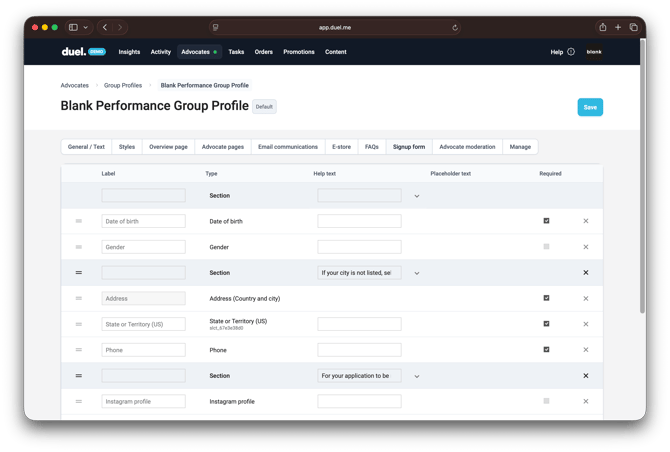 The Signup form tab is the section where all the screening questions and criteria that give shape to the signup page live.