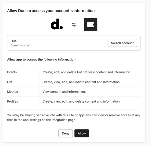 You’ll be redirected to Klaviyo’s OAuth authorisation screen.