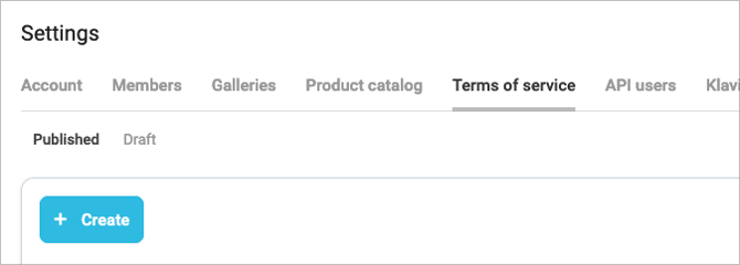 💻 Navigate to Settings (top right) > Terms of Service > Create
